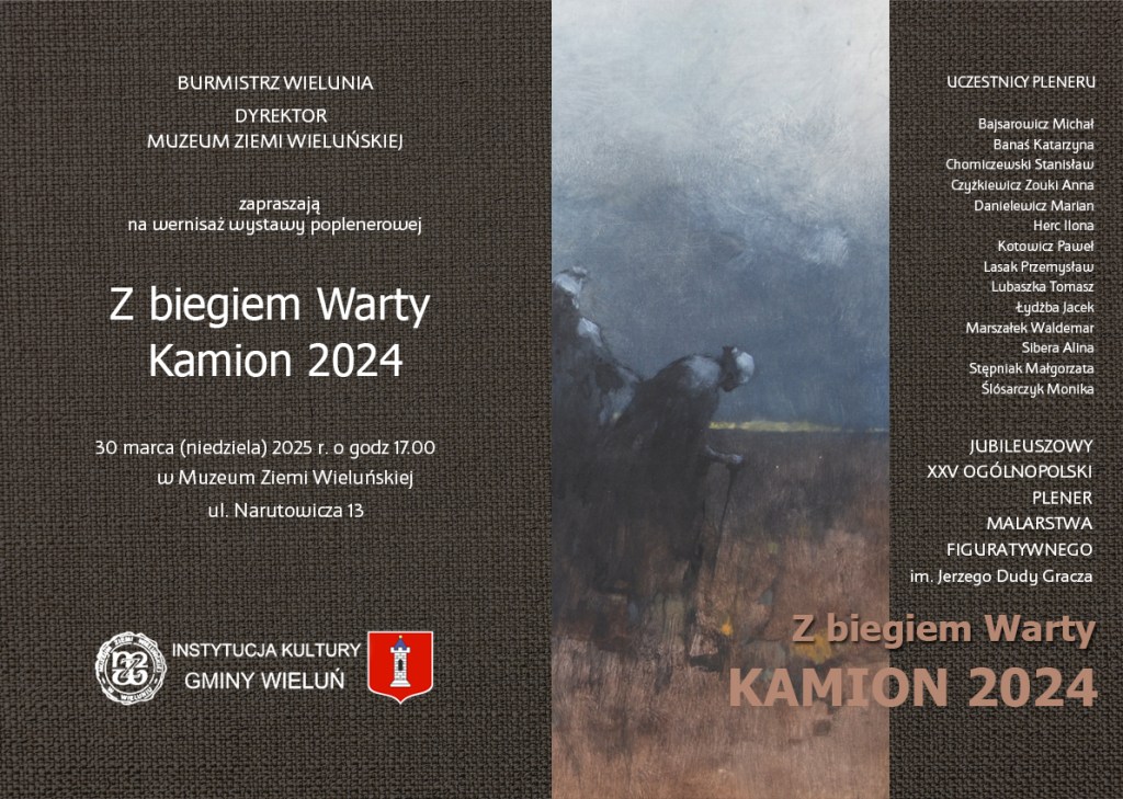 Muzeum Ziemi Wieluńskiej zaprasza na wernisaż wystawy poplenerowej „Z biegiem Warty – Kamion 2024”, który jest pokłosiem XXV Jubileuszowego Ogólnopolskiego Pleneru Malarstwa Figuratywnego im. Jerzego Dudy-Gracza.
