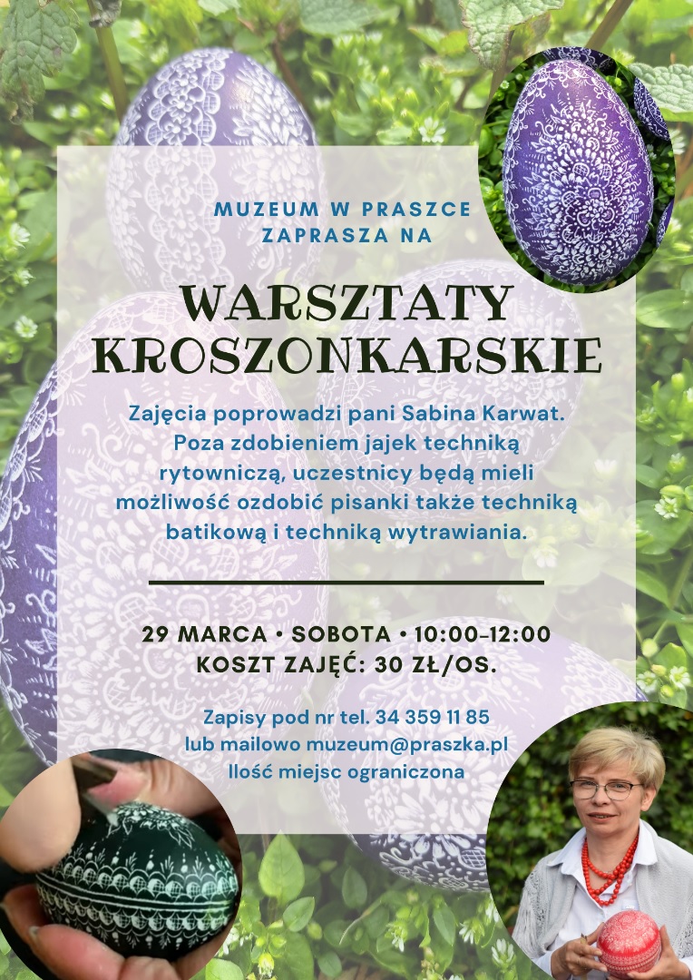 Koszt zajęć: 30 zł/osoba. Ilość miejsc ograniczona. Zapisy pod nr tel. 34 359 11 85 lub mailowo: muzeum@praszka.pl