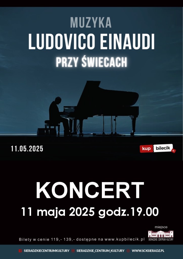 Sieradzkie Centrum Kultury zaprasza na koncert pianisty Ludovico Einaudi Music, który odbędzie się 11 maja (niedziela) o godz. 19:00 w Sieradzkim Centrum Kultury (Teatr Miejski).