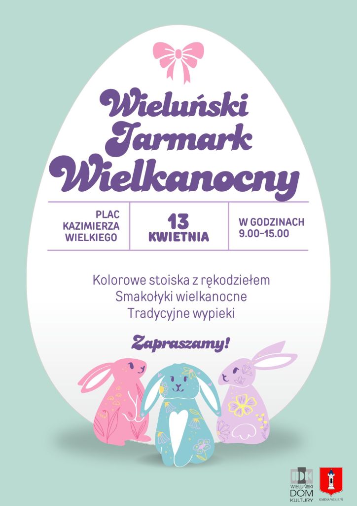 Wieluński Dom Kultury zaprasza na Wieluński Jarmark Wielkanocny, który odbędzie się 13 kwietnia (niedziela) na placu Kazimierza Wielkiego w Wieluniu w godz. 9:00-15:00.
