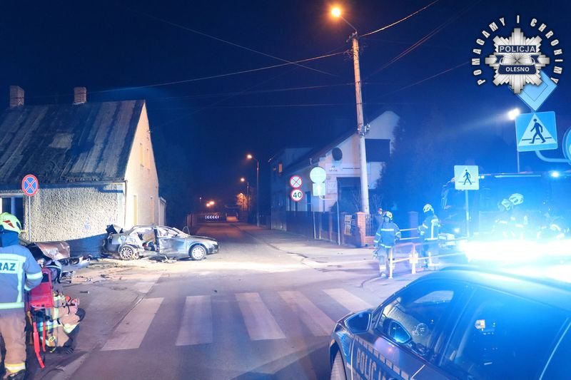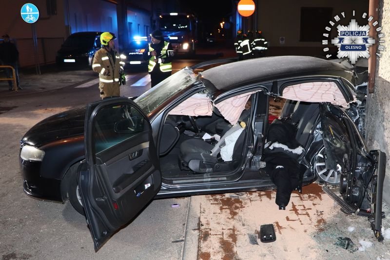 Do zdarzenia doszło 21 marca kilkanaście minut przed północą na skrzyżowaniu ulic Wodnej i Powstańców Śląskich w Praszce. Z policyjnych ustaleń wynika, że 24-letnia kierująca BMW na skrzyżowaniu nie ustąpiła pierwszeństwa przejazdu kierującemu samochodem osobowym marki Audi A4 i doprowadziła do zderzenia bocznego, po którym audi lewym bokiem uderzyło w ścianę niezamieszkanego budynku.