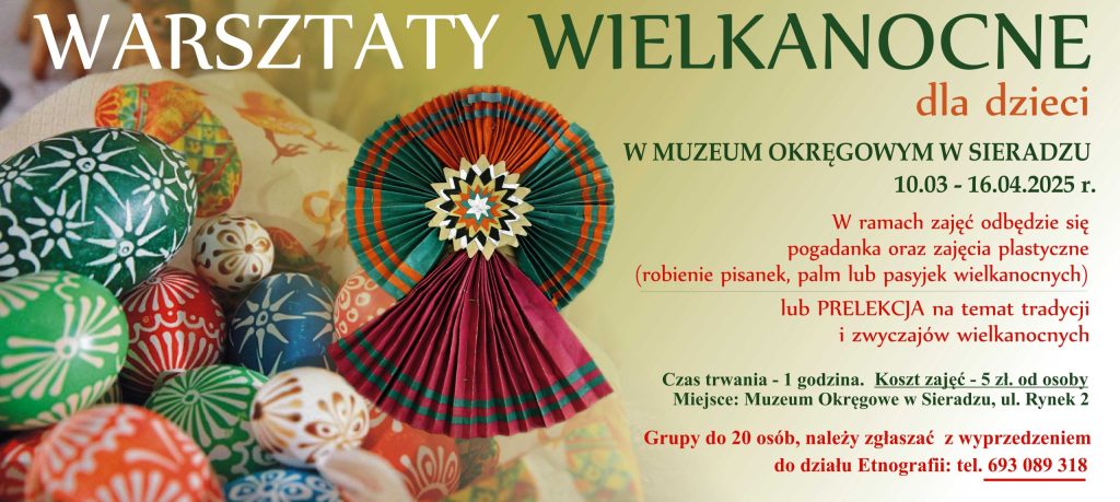 Muzeum Okręgowe w Sieradzu zachęca do zapisywania się do udziału w lekcjach o obrzędowości wielkanocnej. Zajęcia są podzielone na dwie części – najpierw będzie pogadanka o tradycjach, a później uczestnicy wykonają pisankę, palemkę lub pasyjkę.