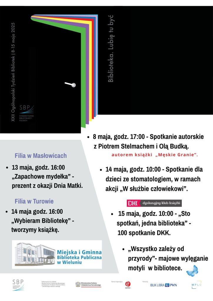 Stowarzyszenie Bibliotekarzy Polskich organizuje w tym roku w dniach 8-15 maja Tydzień Bibliotek. Do akcji włączyła się również Miejska i Gminna Biblioteka Publiczna w Wieluniu.