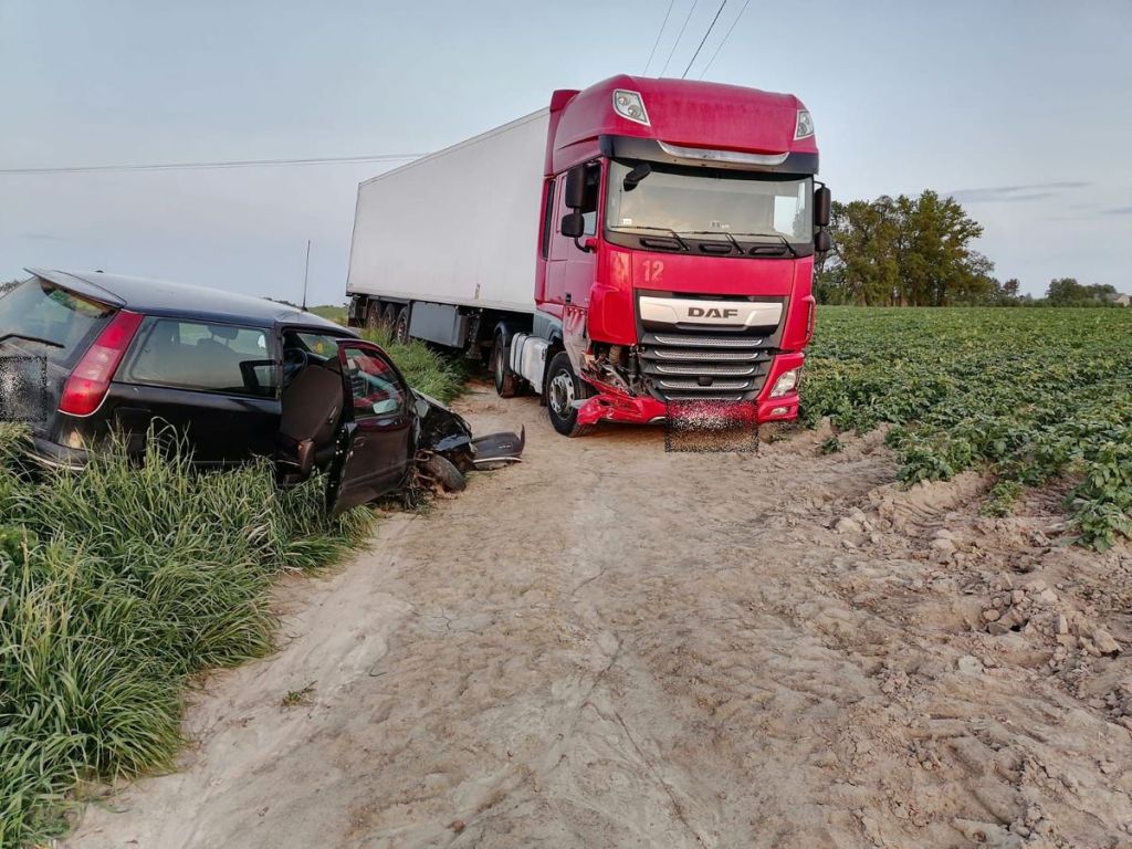 Kolejne zgłoszenie dotyczące kolizji otrzymał dyżurny policji przed godziną 17.00. Z informacji wynikało, że w miejscowości Łubna–Jarosłaj w gminie Błaszki fiat zderzył się z ciężarówką. Policjanci ustalili, że 25-letni mieszkaniec powiatu sieradzkiego kierujący fiatem, wyjeżdżając z prywatnej posesji, podczas włączania się do ruchu, nie ustąpił pierwszeństwa i uderzył w ciężarowego dafa. Okazało się, że 25–latek nie miał uprawnień do kierowania i złamał sądowy zakaz prowadzenia pojazdów. Kierowca fiata również odpowie za niestosowanie się do wyroku sądu, kierowanie pojazdem bez wymaganych uprawnień oraz spowodowanie kolizji.