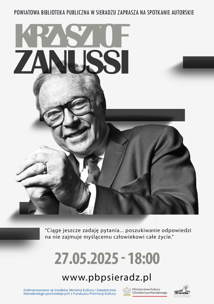 Powiatowa Biblioteka Publiczna w Sieradzu zaprasza spotkanie z Mistrzem ekranu – Krzysztofem Zanussim. Wieczór z kinem, filozofią i życiem.