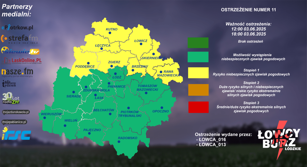 Grupa Łowcy Burz Łódzkie wydała ostrzeżenie dla naszego województwa. Jeśli chodzi o powiat sieradzki, wieluński i wieruszowski, istnieje tam możliwość wystąpienia burz.