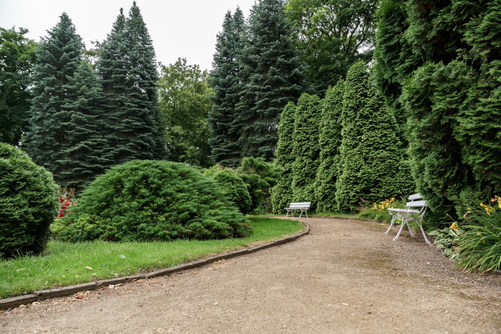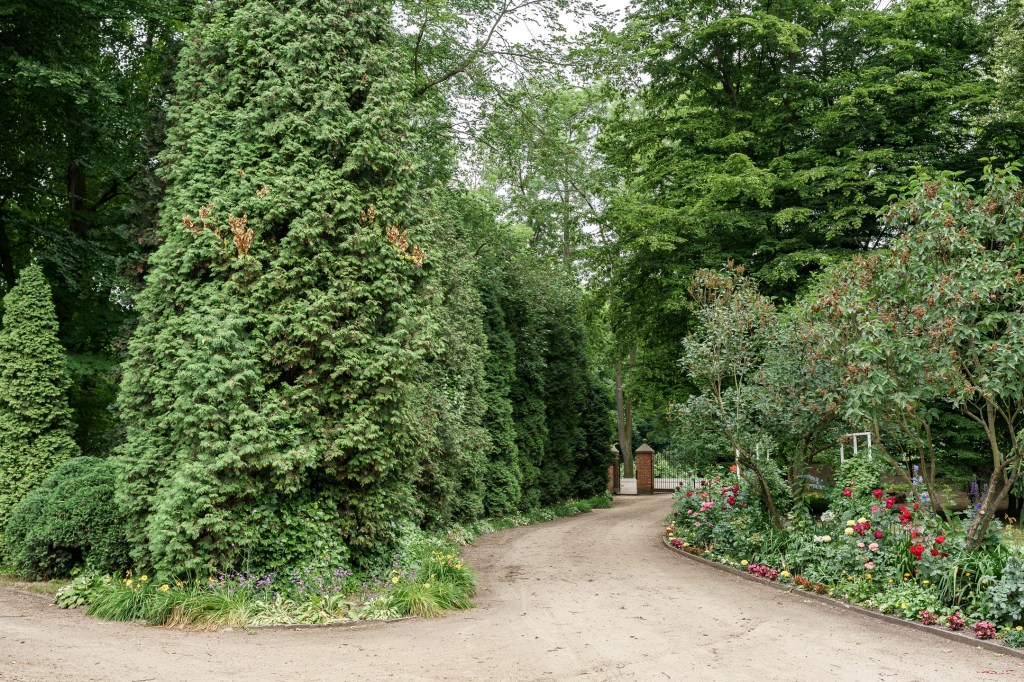 Swoje miejsce w historii ma także park otaczający muzeum – trzyhektarowy teren, który w 1995 roku został uhonorowany Złotym Medalem Ministra Kultury i Sztuki za wzorową rewitalizację. Dziś to nie tylko miejsce spacerów i plenerów, ale także przestrzeń pełna piękna i symboliki. Szczególną atrakcją ogrodu jest wspaniała kolekcja róż – zadbana, rozłożysta i niezwykle kolorowa. W sezonie letnim ogród rozkwita pełnią barw: od głębokich czerwieni i purpury po delikatne róże herbaciane, biele i kremy. Wśród kwiatowych kompozycji, drewnianych pergoli i zabytkowych drzew łatwo zatracić się w czasie, odnaleźć spokój i refleksję.