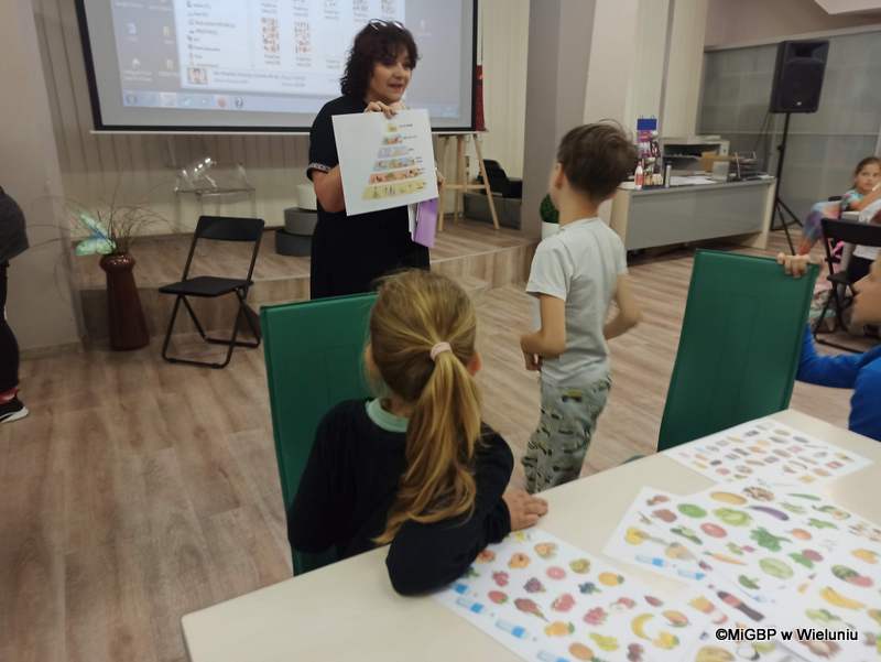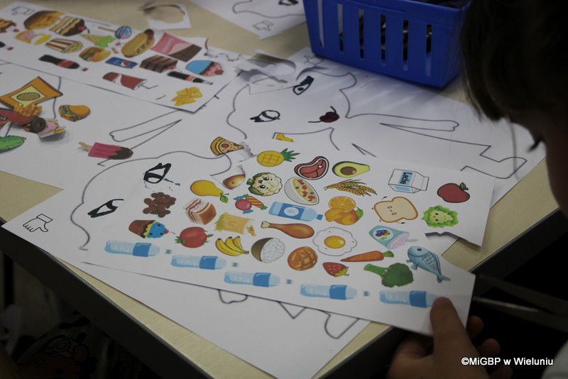 Podczas zajęć dzieci wysłuchały pogadanki o zdrowym odżywianiu, obejrzały edukacyjny film, uczestniczyły w zabawach ruchowych i wyklejały na postaciach zdrowe i niezdrowe produkty.
