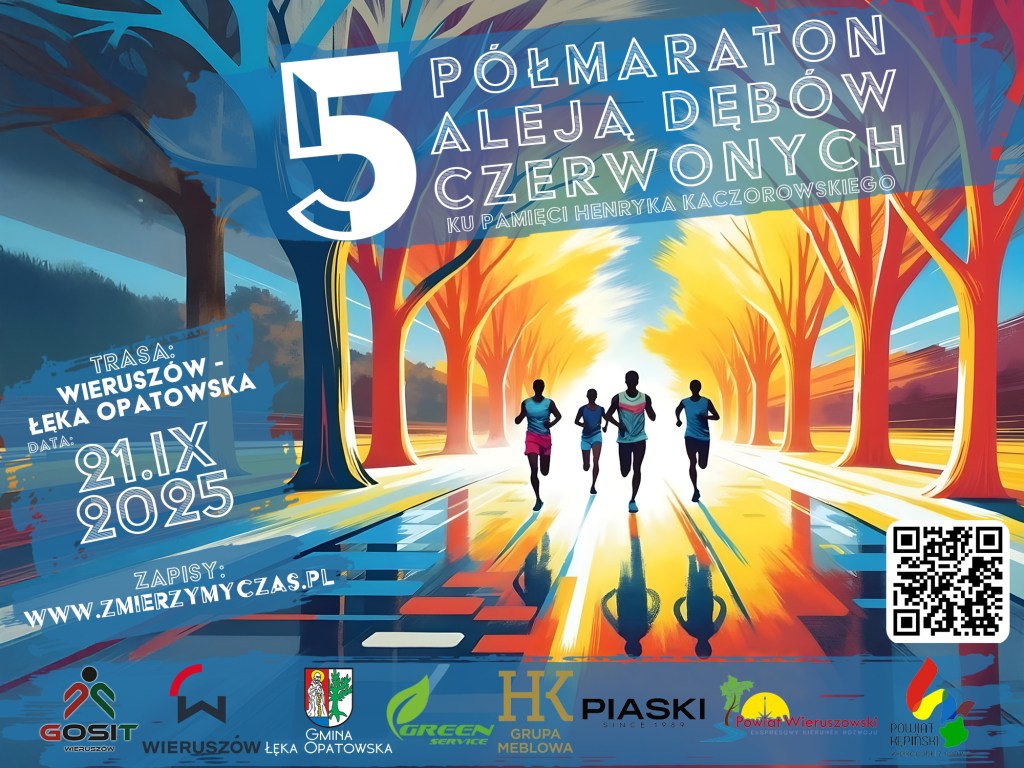 To już 5. jubileuszowa edycja Półmaratonu Aleją Dębów Czerwonych. W tym roku wydarzenie odbędzie się 21 września (niedziela) na trasie Wieruszów – Opatów -Wieruszów (21,0975 km). Start nastąpi o godz. 12:00 na Stadionie Sportowym w Wieruszowie, meta w tym samym miejscu.