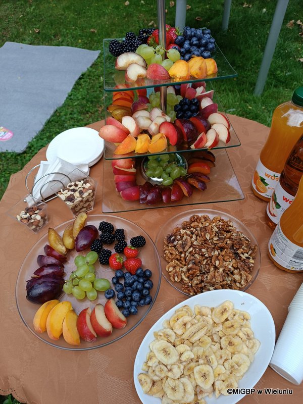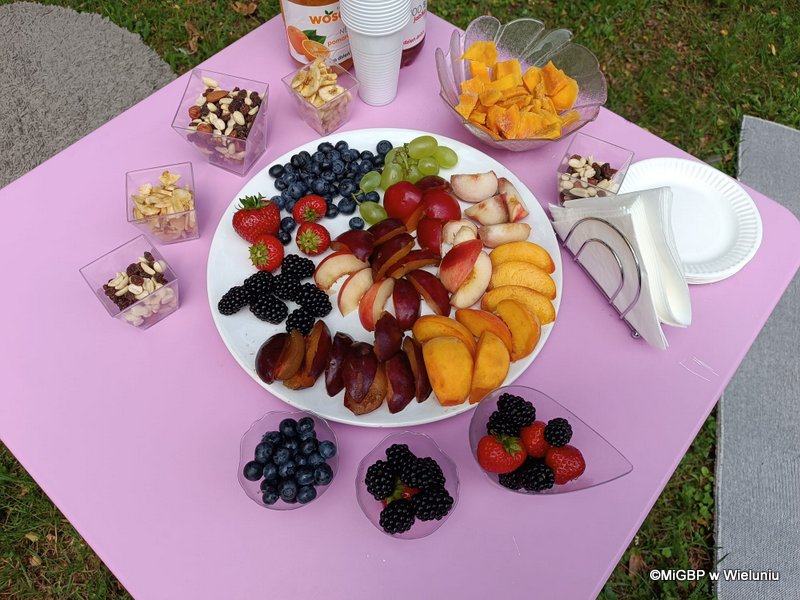 Kącik zdrowej żywności – na wszystkich czekały zdrowe soczki, owoce, orzechy i słodkie rodzynki.