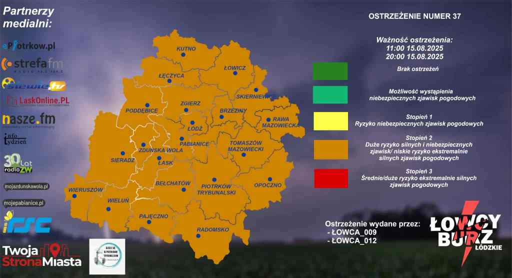 Ostrzeżenie obowiązuje dziś od godz. 11:00 do godz. 20:00. Nadal obowiązuje ostrzeżenie Instytutu Meteorologii i Gospodarki Wodnej, o którym piszemy TUTAJ.