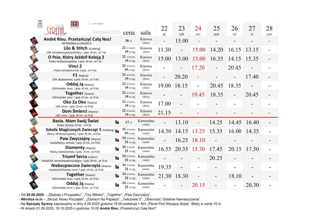Kino Teatr „Syrena” w Wieluniu zaprasza na seanse filmowe. Na plakacie poniżej prezentujemy, co placówka przy ul. Narutowicza 2 zaprezentuje w dniach od 22 do 28 sierpnia. Bilety można zakupić TUTAJ.