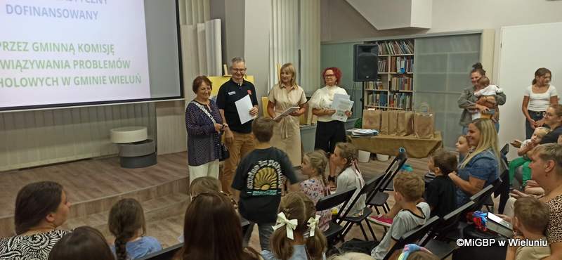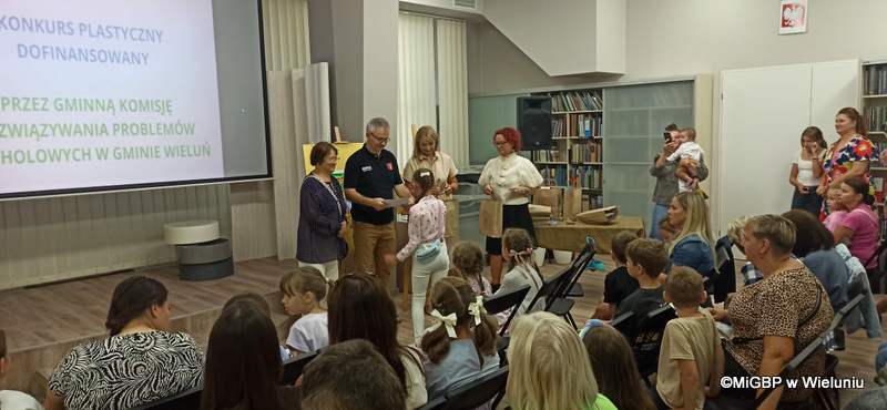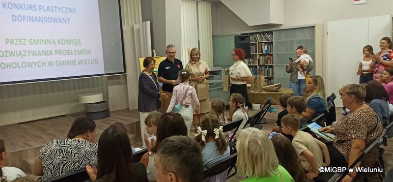 Dziś w Miejskiej i Gminnej Bibliotece Publicznej w Wieluniu odbyło się uroczyste podsumowanie konkursu plastycznego zorganizowanego w ramach programu „Lato z biblioteką profilaktycznie”, dofinansowanego przez Gminną Komisję Rozwiązywania Problemów Alkoholowych w Gminie Wieluń.