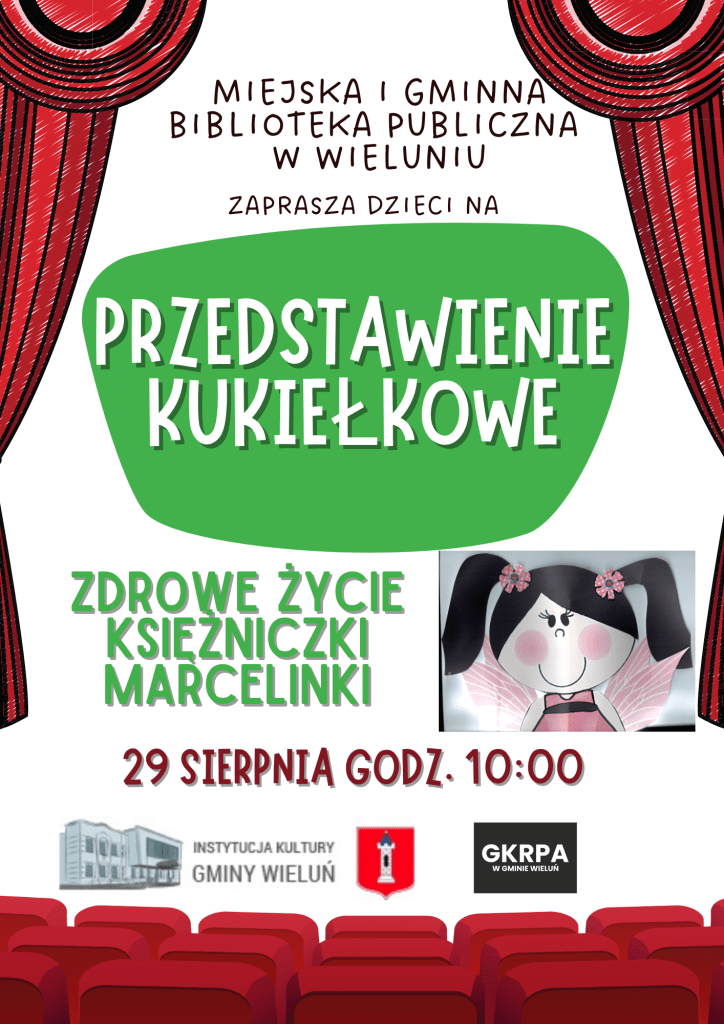 Miejska i Gminna Biblioteka Publiczna w Wieluniu zaprasza na przedstawienie kukiełkowe pt. „Zdrowe życie księżniczki Marcelinki”, które odbędzie się w piątek 29 sierpnia o godz. 10:00 w siedzibie wieluńskiej książnicy przy ul. Narutowicza 4.