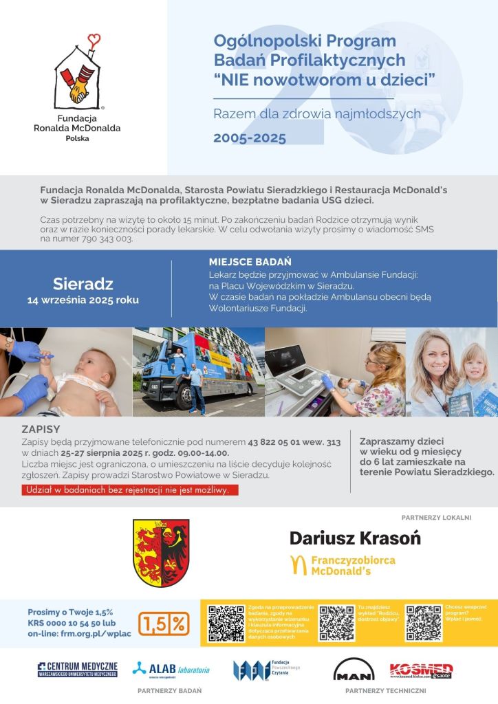 Zapowiada się atrakcyjna niedziela w Sieradzu. W programie jarmarku miedzy innymi prezentacja oraz warsztaty sztuki i rękodzieła, kiermasz artykułów spożywczych, wesołe miasteczko, gry i zabawy dla dzieci, pokaz sprzętu wojskowego i strażackiego, występy w zespołów i solistów z gmin powiatu sieradzkiego, zespołów Nowator i Big Cyc. Będą też bezpłatne badania profilaktyczne oraz badania w ramach programu ‚”Nie nowotworom u dzieci”.