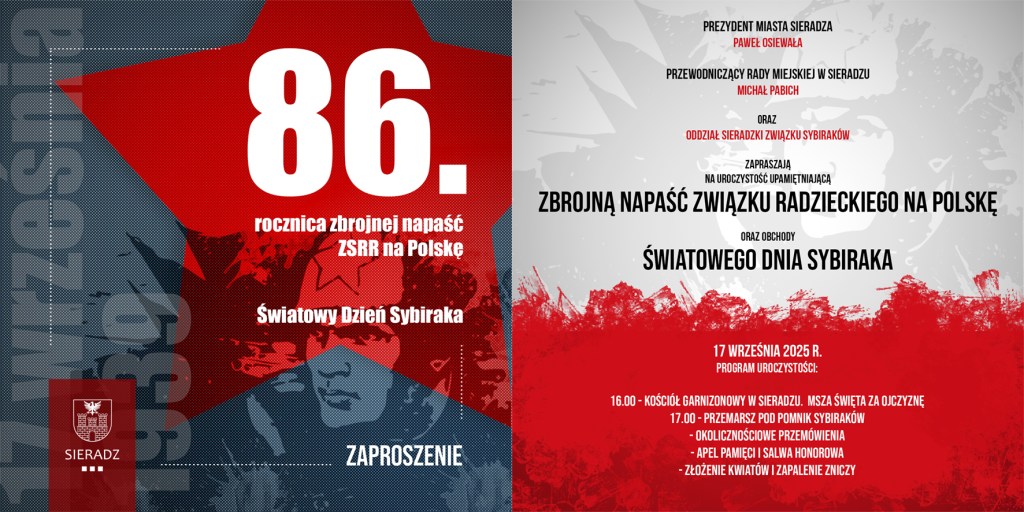 17 września to Dzień Sybiraka. W tym roku mija również 86. rocznica zbrojnej napaści ZSRR na Polskę. Uroczystości odbędą się m.in. w Sieradzu.