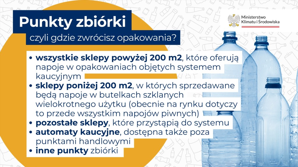 Opakowania oddamy w sklepach powyżej 200 metrów kwadratowych, które oferują napoje w opakowaniach objętych systemem kaucyjnym, w pozostałych sklepach, które przystąpią do systemu, a także w automatach kaucyjnych i innych punktach zbiórki.