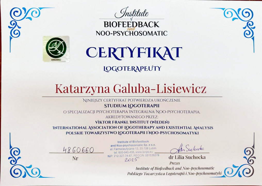 Katarzyna Galuba – Lisiewicz, psycholog i psychoonkolog ze szpitala w Sieradzu, podległego Urzędowi Marszałkowskiemu Województwa Łódzkiego, ukończyła kurs i zdała międzynarodowy egzamin z logoterapii. To szczególny rodzaj terapii, który pomaga ludziom odnajdywać sens i nadzieję nawet w najtrudniejszych chwilach: w chorobie, bólu czy długim leczeniu.