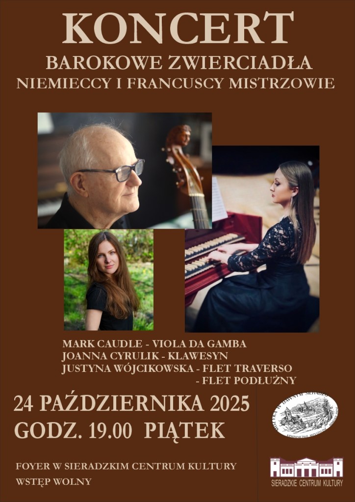 Sieradzkie Centrum Kultury zaprasza na koncert „Barokowe zwierciadła – niemieccy i francuscy mistrzowie”, który odbędzie się 24 października (piątek) o godz. 19:00 we Foyer w nowej części SCK-u (przed salą kinową).