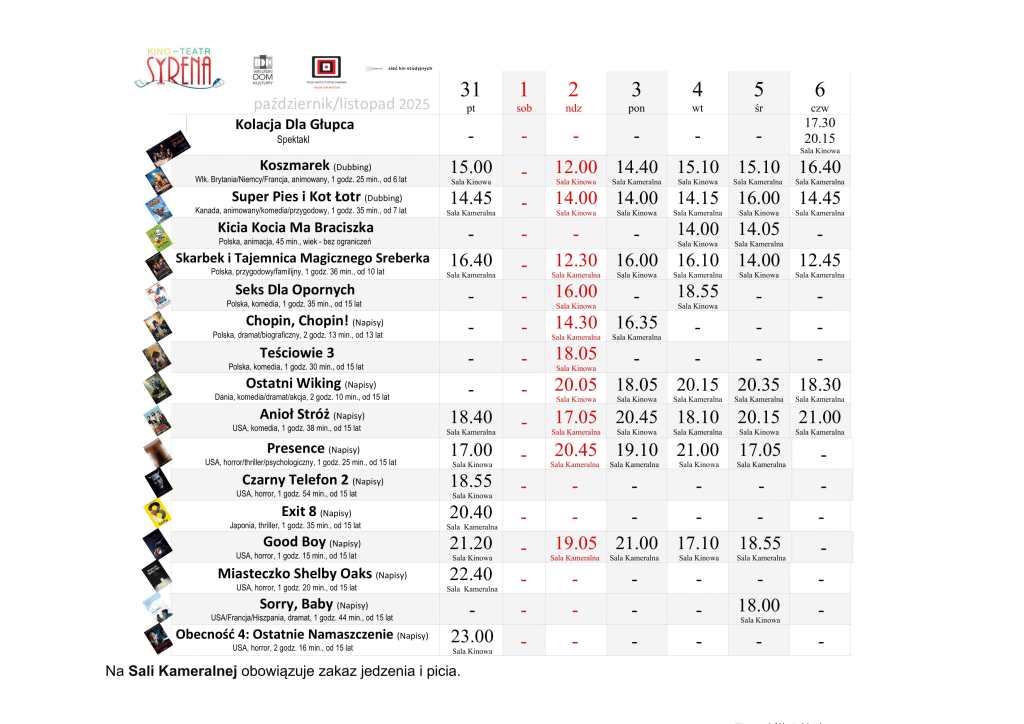 Kino Teatr „Syrena” w Wieluniu zaprasza na seanse filmowe. Na plakacie poniżej prezentujemy, co placówka przy ul. Narutowicza 2 zaprezentuje w dniach od 31 października do 6 listopada. Bilety można zakupić TUTAJ.