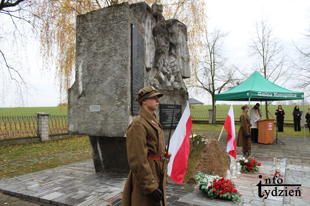 Okolicznościowe przemówienia wygłosili starosta wieluński – Maciej Bryś oraz wójt gminy Konopnica – Jacek Kurowski. Odmówiona została również modlitwa. W dalszej części uroczystości, delegacje złożyły kwiaty i zapaliły znicze przed Pomnikiem Poległym za Ojczyznę we wrześniu 1939 roku. Warto nadmienić, że o oprawę muzyczną uroczystości zadbała Orkiestra Dęta z Czarnożył.