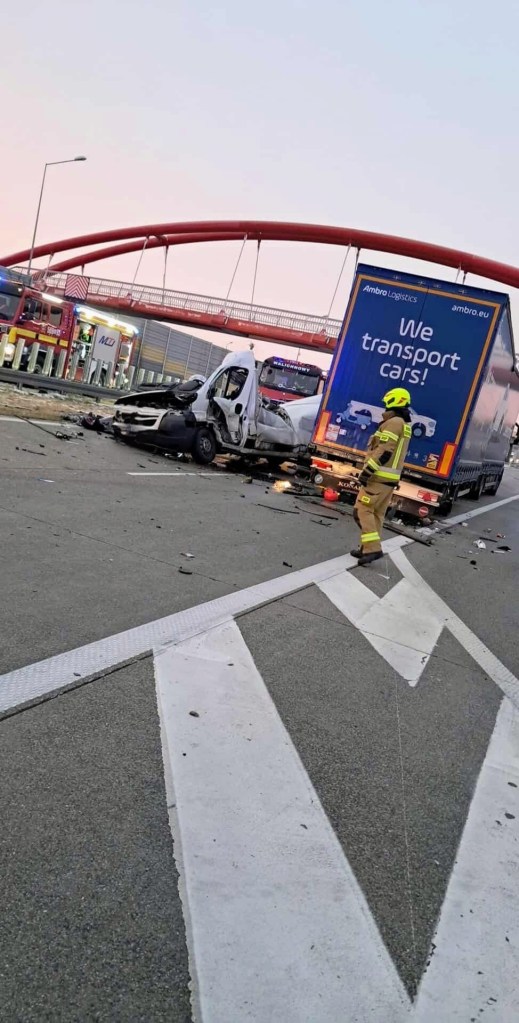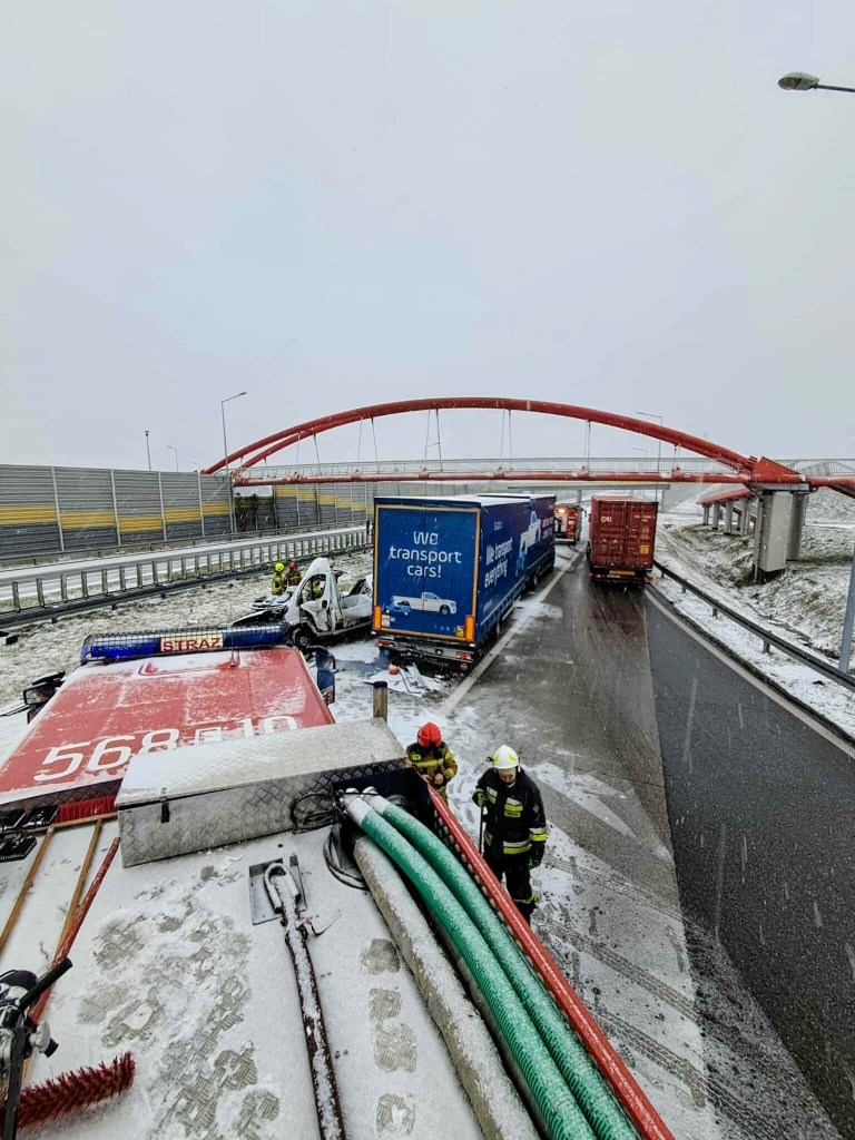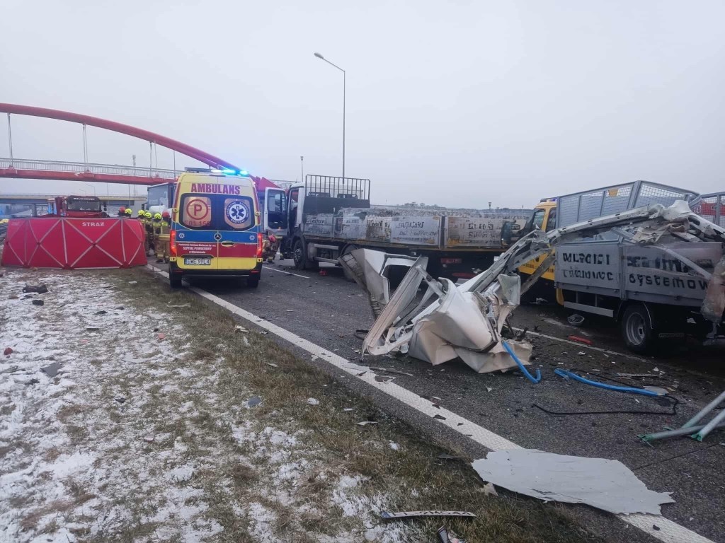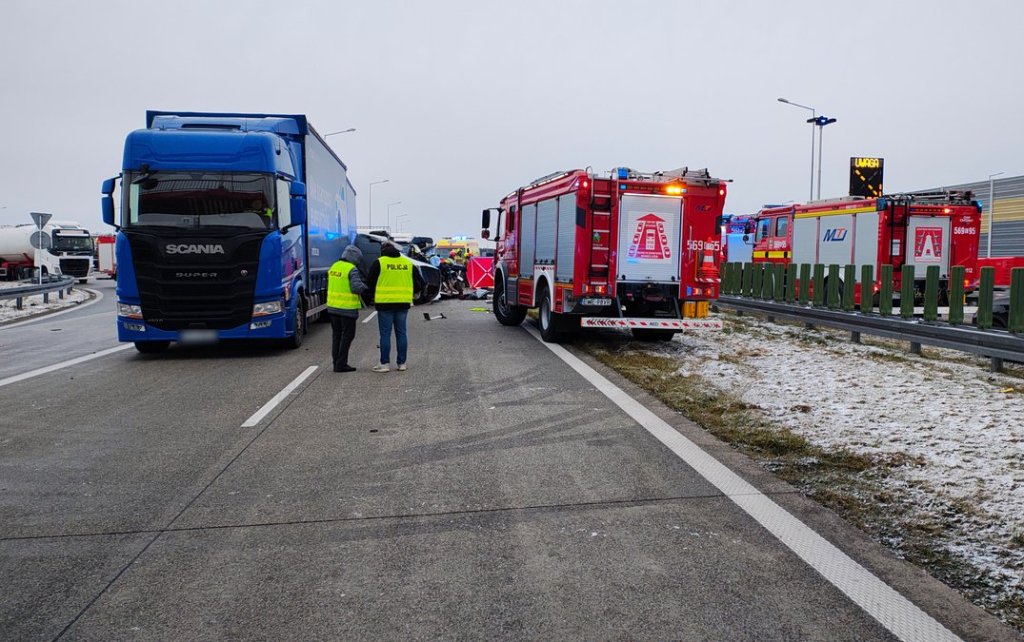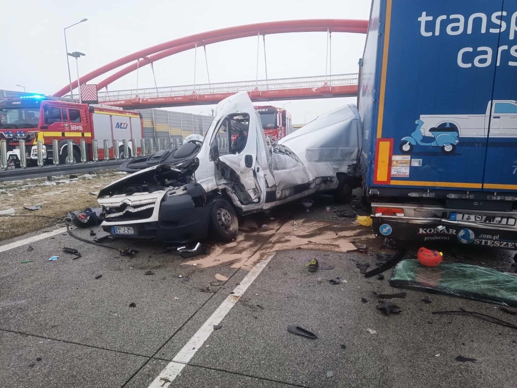 Informacja o wypadku drogowym w miejscowości Chojny na trasie S8 wpłynęła na stanowisko kierowania wieruszowskiej komendy 24 listopada po godzinie 6:00. Wówczas na drodze tworzył się korek gdyż niespełna kilometr dalej miał miejsce pożar przyczepy ciężarowej. Z ustaleń śledczych wynika, że kierujący pojazdem marki Citroen Jumper z nieznanych dotąd przyczyn jadąc w kierunku Wrocławia najechał na tył stojącego na prawym pasie dostawczego Iveco, które w następstwie zostało przemieszone do przodu uderzając w stojącego przed nim ciężarowego Mercedesa. Siła uderzenia była tak duża, że Citroen przemiesił się dalej uderzając w stojącą w ciągu pojazdów przyczepę ciężarowej Scanii. Niestety pomimo podjętych działań przybyłych na miejsce służb ratunkowych cztery osoby podróżujące dostawczym Citroenem poniosły śmierć na miejscu. Byli to mężczyźni w wieku od 42-54 lat mieszkańcy powiatów skarżyskiego oraz Dąbrowy Górniczej. Pojazdem podróżował również 22-latek, który z obrażeniami ciała został przetransportowany LPR do szpitala. Policjanci pod nadzorem obecnego na miejscu prokuratora wykonali szereg czynności procesowych min. przesłuchali świadków oraz zabezpieczyli ślady. Droga w miejscu wypadku do godzin popołudniowych była całkowicie zablokowana. Policjanci wspierani przez służbę drogową S8 oraz funkcjonariuszy z jednostek ościennych kierowali na wyznaczone objazdy przez węzeł Złoczew na drogę W482 do węzła Wieluń. Prowadzone pod nadzorem prokuratora śledztwo ma na celu wyjaśnienie dokładne okoliczności i przyczyny tego wypadku.