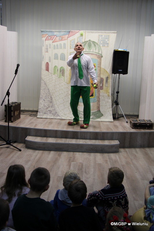 15 grudnia 2025 r. w Miejskiej i Gminnej Bibliotece Publicznej w Wieluniu odbyło się spotkanie ze spektaklem „Piotrek Kolorowy Nos i jego sztuczki”, autorstwa Piotra Tomczaka – artysty cyrkowego z wieloletnim doświadczeniem scenicznym.