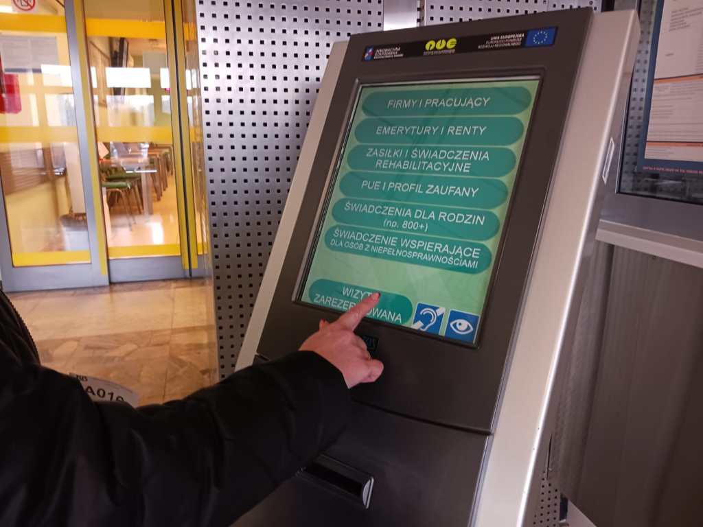 - podczas wizyty w placówce ZUS, np. na stanowisku Informacji ogólnej/Dziennika podawczego lub na stanowisku komputerowym dla klientów.