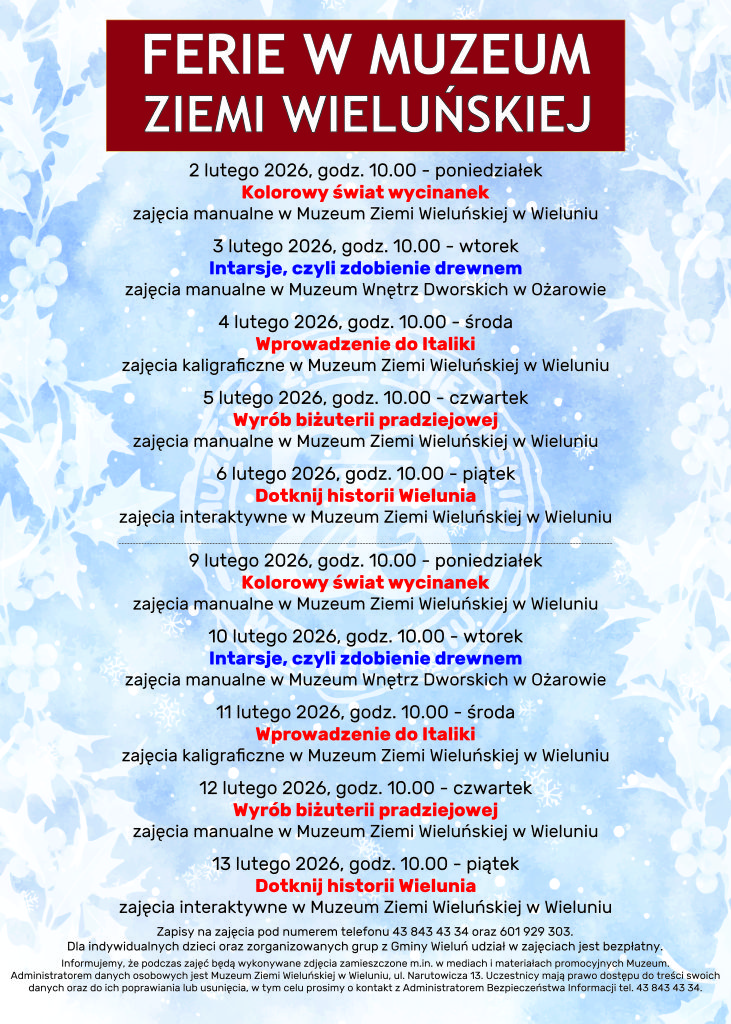 Ofertę na ferie zimowe przygotowało też Muzeum Ziemi Wieluńskiej. Wszystkie zajęcia dla dzieci z gminy Wieluń są bezpłatne.
