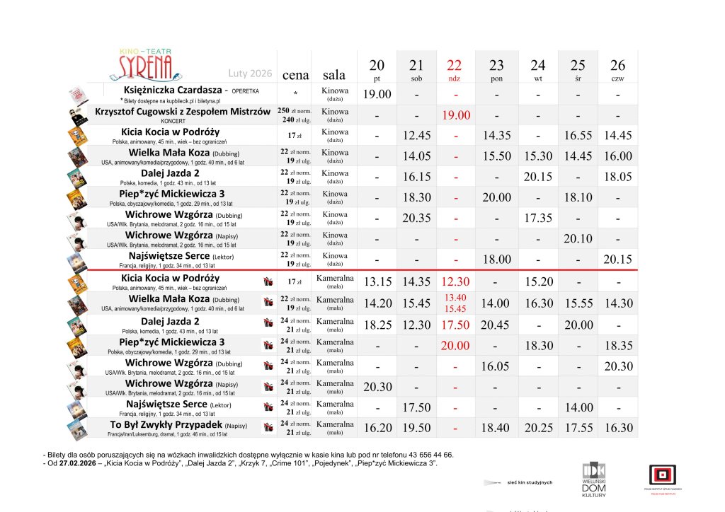 Kino Teatr „Syrena” w Wieluniu zaprasza na seanse filmowe. Na plakacie poniżej prezentujemy, co placówka przy ul. Narutowicza 2 puści w dniach od 20 do 26 lutego. Bilety można zakupić TUTAJ.