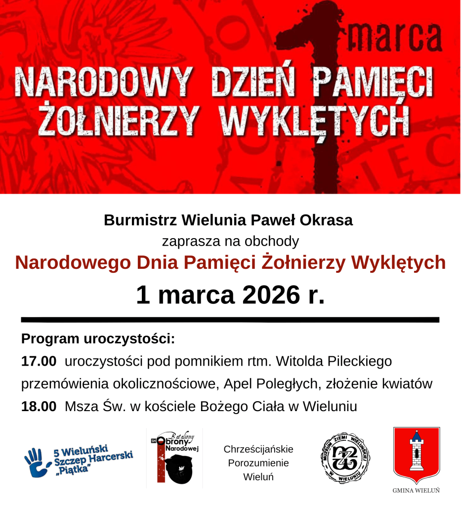 W niedzielę 1 marca przypadnie Narodowy Dzień Pamięci „Żołnierzy Wyklętych”. W regionie odbędą się wydarzenia związane z tym dniem – zobaczcie, jak będą przebiegać obchody w Sieradzu i w Wieluniu.