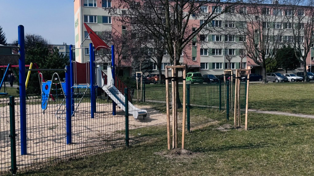 Na 13 placach zabaw posadzono łącznie 64 drzewa, które w najbliższych latach będą pełnić ważną funkcję przyrodniczą, estetyczną oraz społeczną.