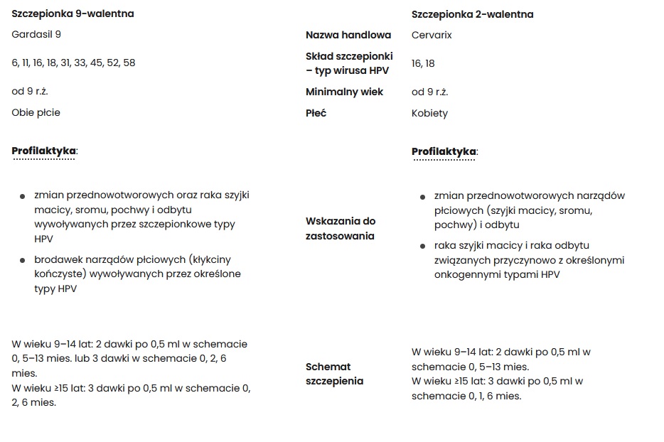 W Polsce w powszechnym programie szczepień przeciw HPV bezpłatnie dostępne są 2 szczepionki: