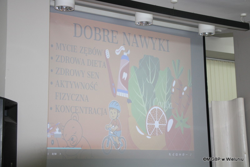 Dzieci obejrzały prezentację i dowiedziały się m.in. jak prawidłowo dbać o higienę, dlaczego warto zdrowo się odżywiać, jak ważne jest regularne mycie zębów, dlaczego ruch to zdrowie.