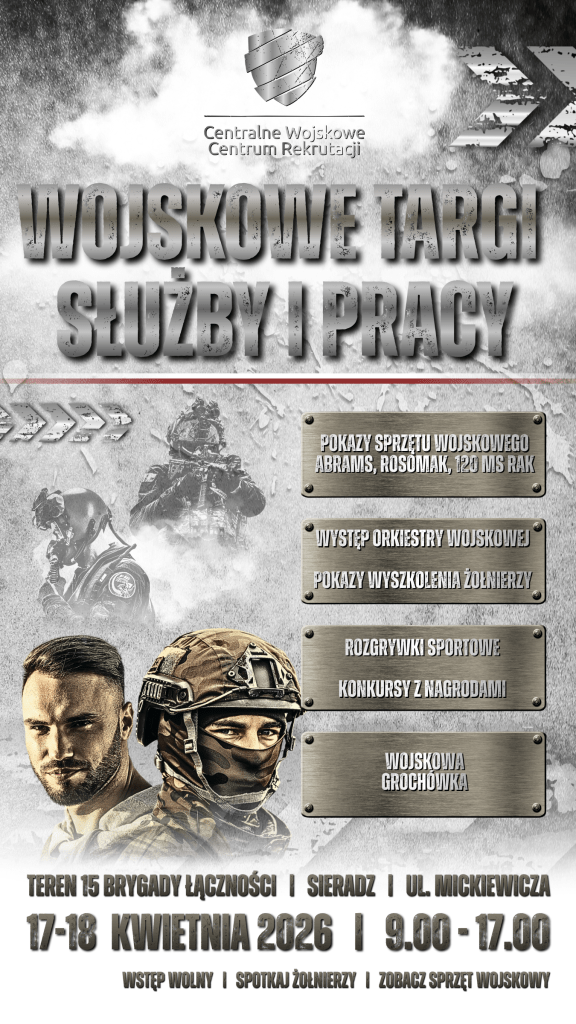Wojskowe Targi Służby i Pracy w Sieradzu odbędą się na terenie 15. Brygady Łączności w Sieradzu w dniach 17-18 kwietnia (piątek-sobota) w godz. 9:00–17:00.