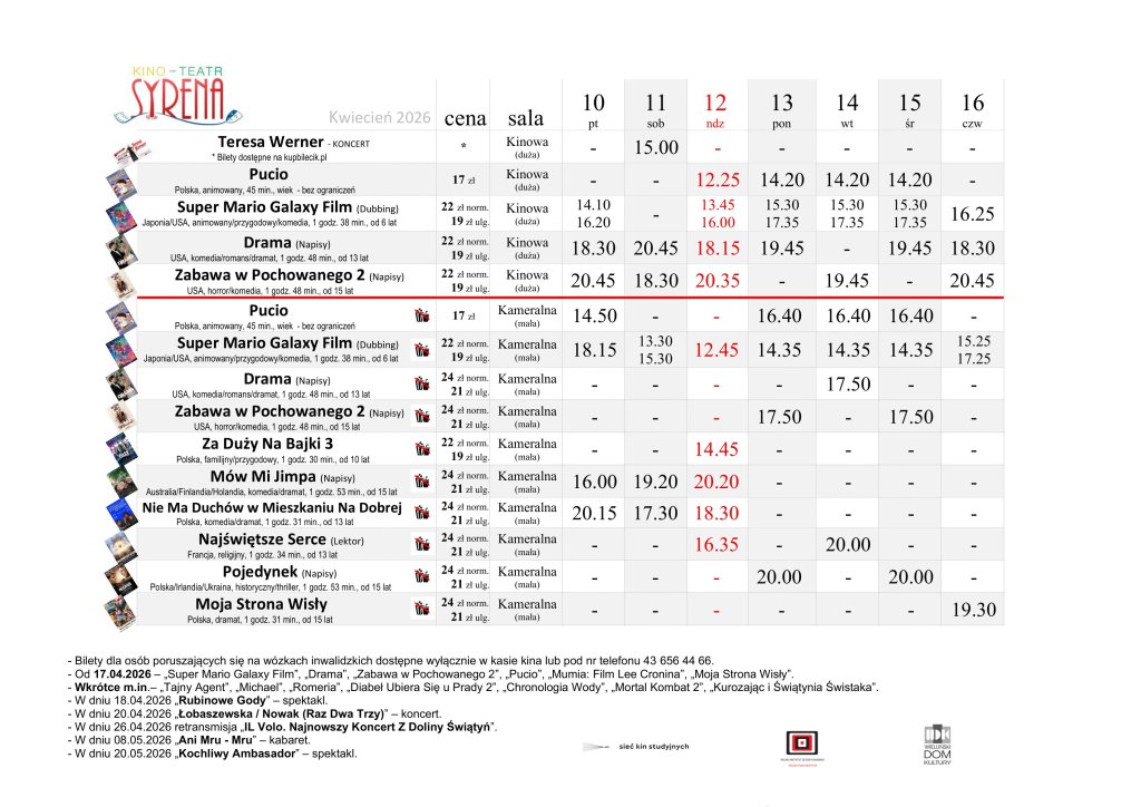 Kino Teatr „Syrena” w Wieluniu zaprasza na seanse filmowe. Na plakacie poniżej prezentujemy, co placówka przy ul. Narutowicza 2 puści w dniach od 10 do 16 kwietnia. Bilety można zakupić TUTAJ.